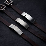 Kernelæder armbånd med sølv spænde og plade, isat 0,05 ct cognac farvet brillant. Vælge mellem sort og brunt læder.